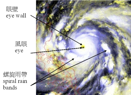 一般來説,颱風可以分為風眼、眼壁和螺旋雨帶三個部分。