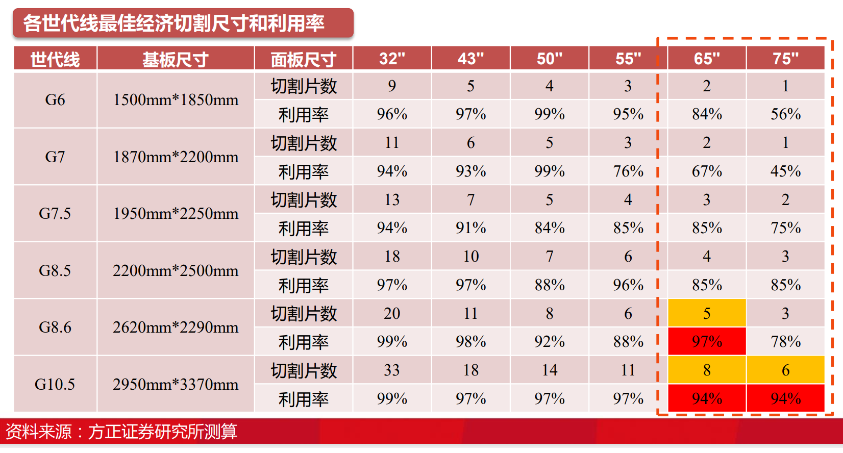 玻璃基板尺寸雖然不是液晶面板產業技術進步的唯一方向,但卻是行業發展的核心技術標準:世代越高,可以切割的面板尺寸越大,同時切割效率越高——這是競爭優勢的同義詞。