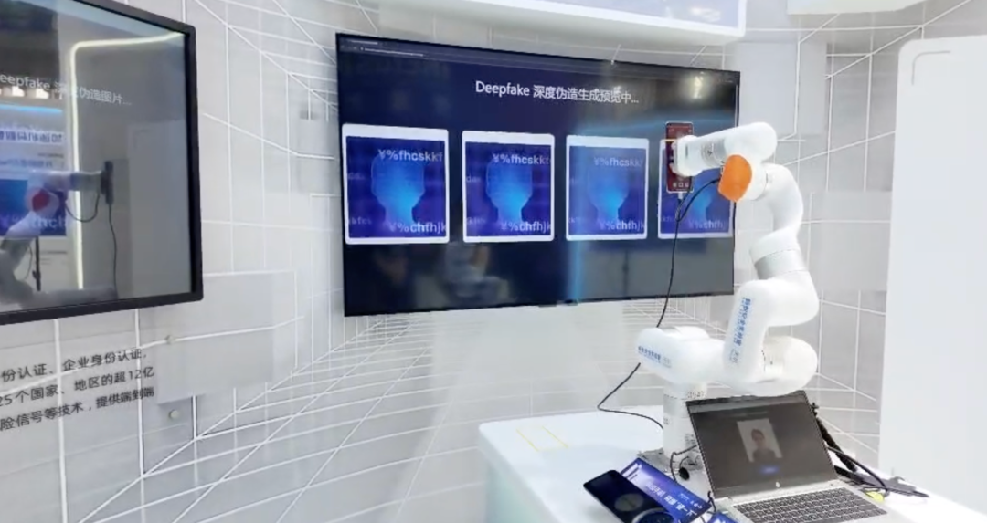 那麼首先就來看螞蟻數科裏這個超火的展區:Deepfake攻防。