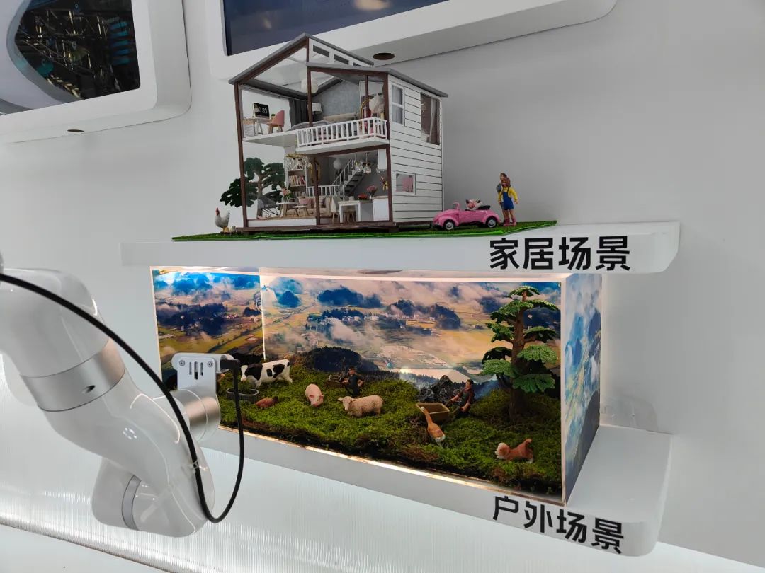 現場準備了一個模擬真實環境的沙盤,我們通過控制機械臂來對沙盤中任意位置or場景,進行實時拍照。