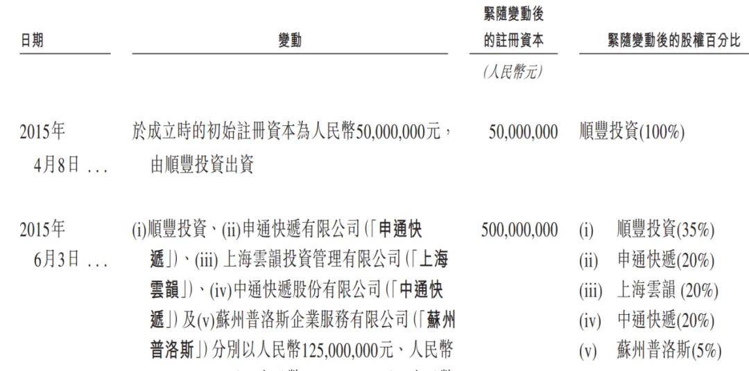 2個月後,順豐投資、申通、韻達、中通、普洛斯才共同認購了豐巢科技新增的4.5億元註冊資本。增資完成後,順豐投資是第一大股東,持股35%,中通、申通、韻達分別持股20%。