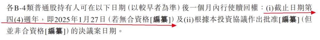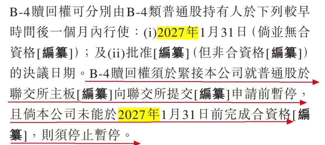 在遞表前夕的8月26日,這一協議緊急修訂。按照新規定,B-4類普通股股東的贖回權在公司向港交所提交上市申請前暫停,倘若公司未能於2027年1月31日前完成合資格上市,贖回權恢復。