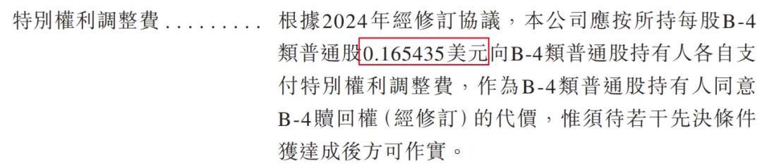 而將對賭時間延長2年時間是需要付出代價的。根據2024年經修訂協議,公司應按所持每股0.165435美元向B-4類普通股持有人各自支付特別權利調整費,作為B-4類普通股持有人同意B-4贖回權(經修訂)的代價。