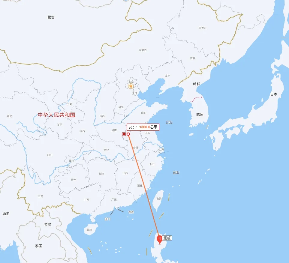 部署在呂宋島北部地區時,“戰斧”導彈的射程(圖源:百度地圖)