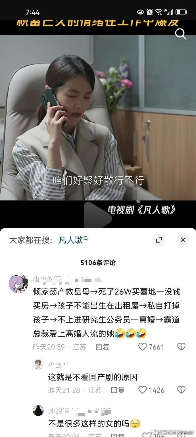 這兩天很多人在批評國產劇凡人歌的價值觀