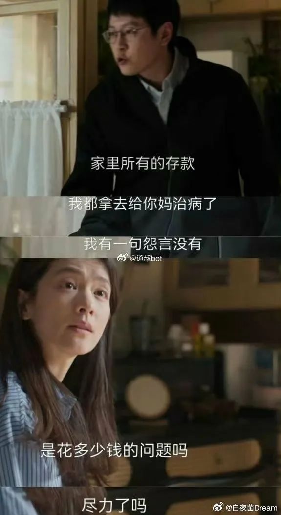 哪怕你是985碩博,哪怕你考上北京公務員,哪怕你是小鎮做題家中的佼佼者,只要你沒錢,你就是有罪的。什麼尊重女性,思想獨立,都是虛的,只要你掏不出錢來,你就是有罪。女方母親癌症,男方傾其所有還欠債無數,錢不夠,你就是有罪。沒錢,你怎麼好意思讓女主生孩子的?沒錢沒房,你怎麼有臉結婚的?結婚就是為了找高富帥供養,你們窮人進入婚戀市場等於加大了女性找高富帥的篩選成本,這種砸人飯碗的事當然會讓人恨的咬牙切齒。但是,當把這一切潛台詞都擺上枱面後,這劇反而打出了物極必反的效果。因為把面具撕掉後,核心矛盾反而清晰了這部劇的核心矛盾就在於,男主作為一個拿死工資的公務員,和女主對錢的需求。