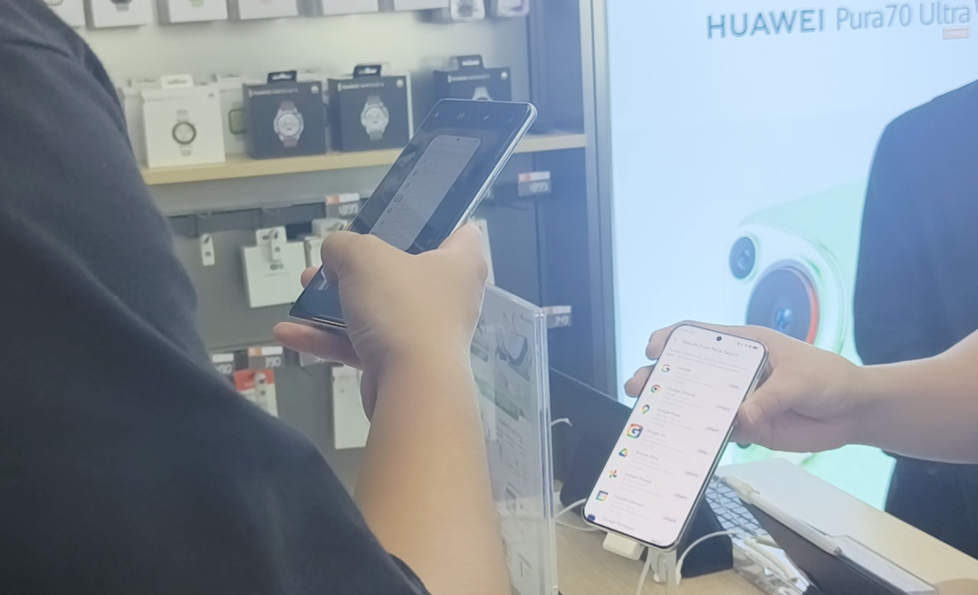 更離譜的是,我們在其中一家授權店裏體驗泰國版的 Pura 70 的時候,發現這上面居然有谷歌全家桶!