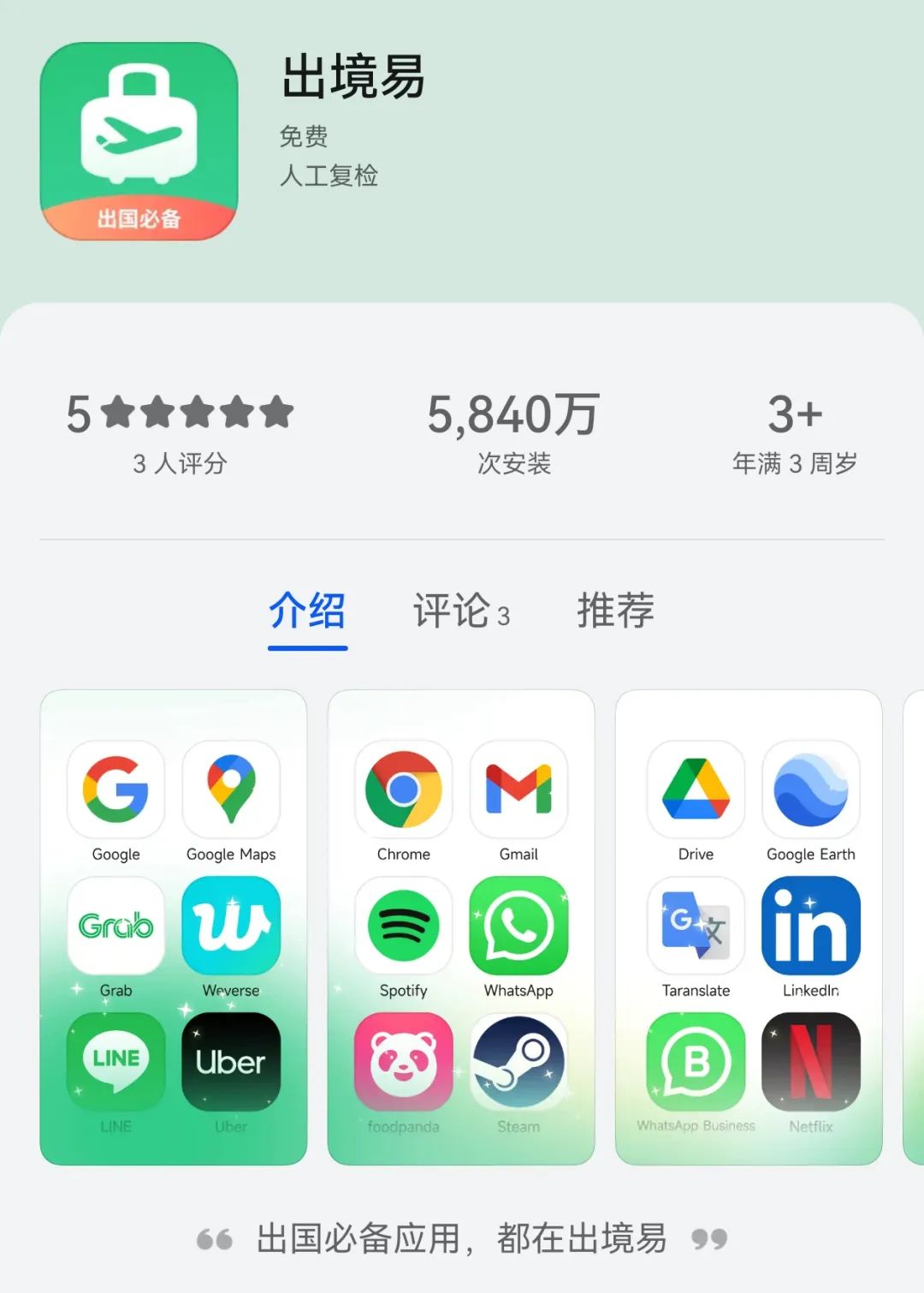 除了 Micro G 以外,華為手機還有很多渠道可以用上谷歌全家桶,比較常見的有 “ 出境易 ” 。它的實現方式跟 Micro G 又不太一樣,你只能在出境易這個軟件裏面安裝谷歌軟件,並不能直接裝在手機上。
