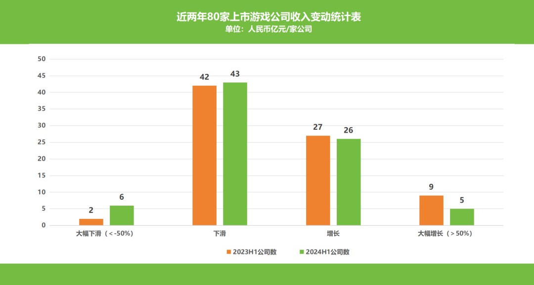 遊戲收入增速方面,今年收入下滑超50%的廠商有6家,數量同比增長200%。