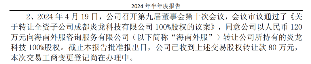後來,炎龍科技因遊戲運營、債務糾紛等原因資不抵債,在今年4月被瀚葉股份以80萬元出售全部股權;而瀚葉股份則在今年先後收購亨通銅箔100%股權,更名為亨通股份,重回生物製藥、工業科技行業。