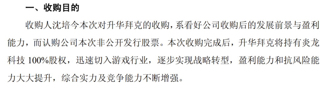 2016年,生物製藥公司昇華拜克與投資公司瀚葉股份通過相互持股,拿下炎龍科技100%股權,進入遊戲行業。