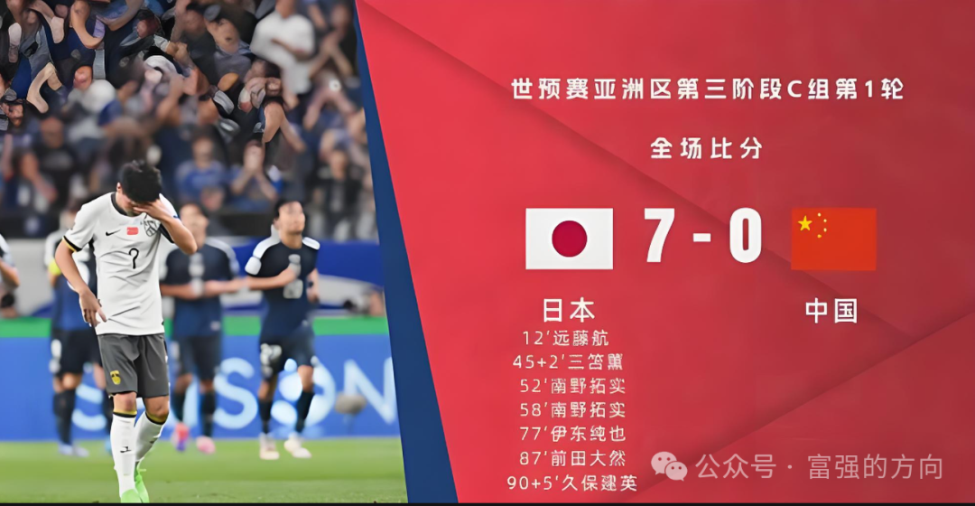 9月5日晚,美加墨世界盃預選賽亞洲區18強賽正式拉開戰幕,中國男足在首場小組賽客場對陣日本男足,這完全就是日本男足把中國男足按在地上,進行碾壓式搓擦的羞辱性比賽。最終,中國男足恥辱性地以0:7慘敗於日本男足。