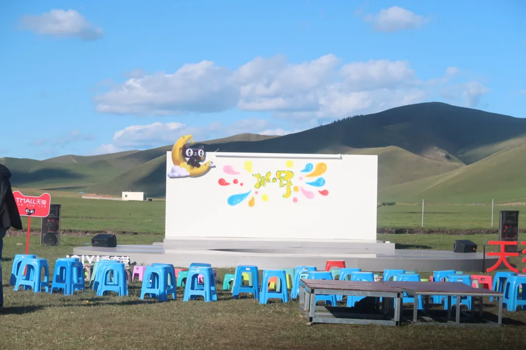 探班當天,在這裏生活了一百來天的女孩們做事已經井井有條,不僅有着放牧的鬆弛感,還邀請了草原上的年輕人來觀光,穿着民族服飾的小孩們在舞台上拉馬頭琴,表演完後,大家手拉手一起完成最後的篝火狂歡。