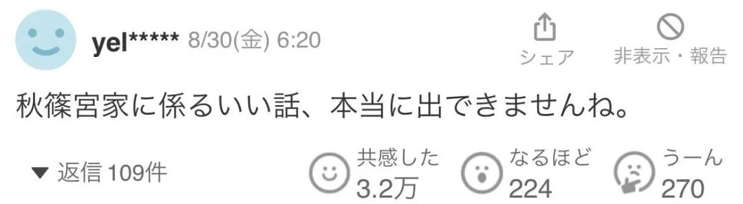對此日本網友表示:你看,我就説吧,只要是和秋筱宮家有關的新聞就沒有好事。