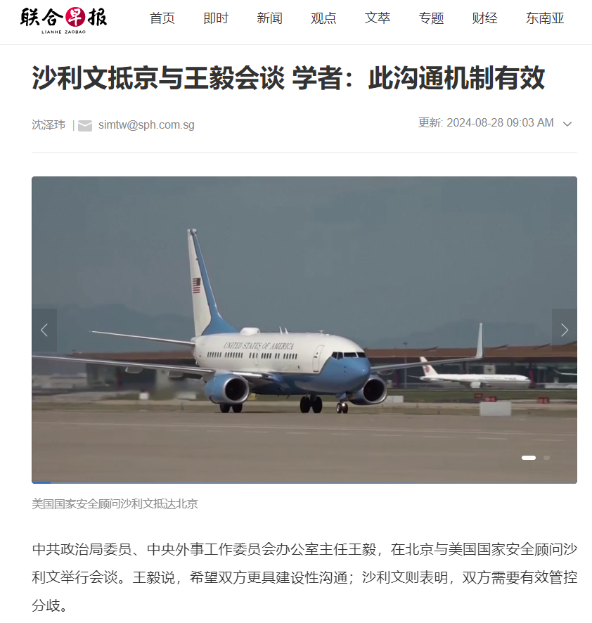 我只知道,沙列文前不久剛剛來訪問了,強調雙方需要有效管控分歧。