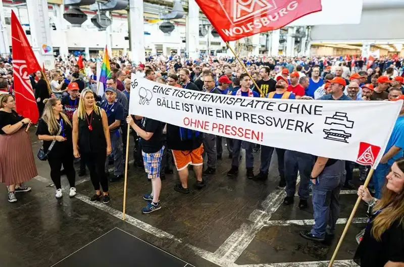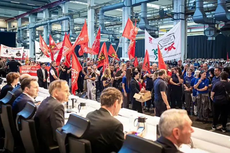 大眾關廠,對於德國本土工人來説,也是個巨大的衝擊。大眾在全球有約 68 萬名員工,其中約一半在德國。工人阿克塞爾·文茨拉夫對媒體表示:“人們害怕失去房子和被解僱。我在這家工廠工作了38年。”許多工人舉着標語,同時向高層們高喊“我們是大眾,你們不是”、“再見”等口號……