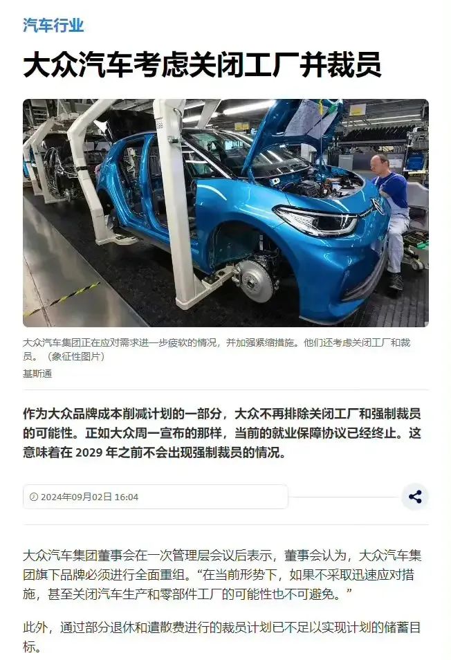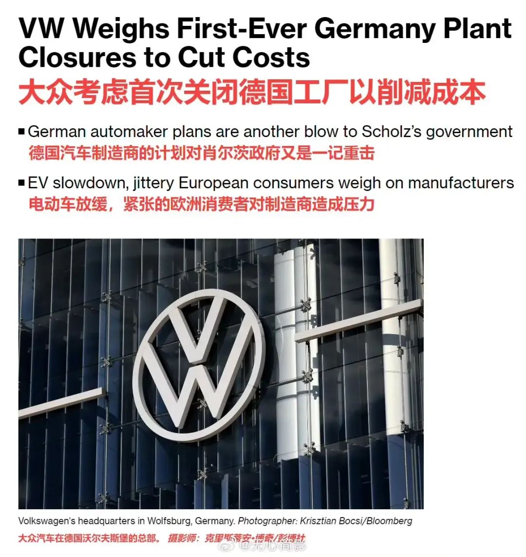 現在大眾汽車德國有12萬工作崗位人人自危,不知道到底要關閉哪家工廠,以及什麼時候關。根據大眾董事會的解釋,在德國,至少有一家整車廠,以及一家零部件工廠沒必要繼續存在。