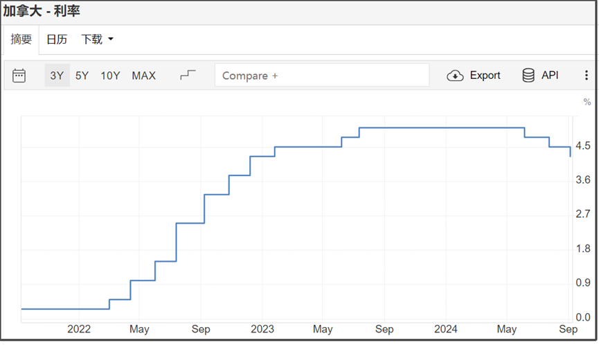 也難怪加拿大今年已經降息3次,利率已經從5%,降息到4.25%;