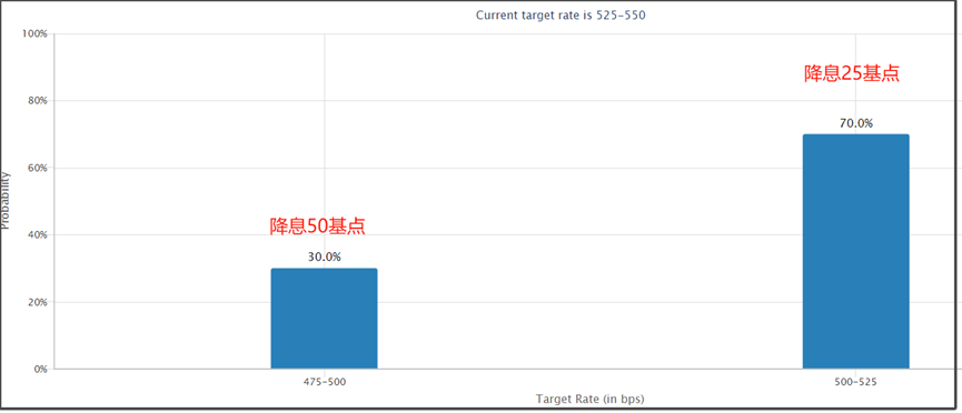 之前是市場對美國經濟衰退擔憂增加,預期降息50基點的概率就會增加。