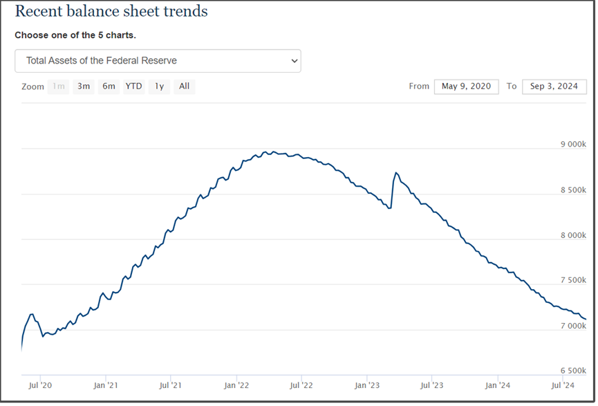 9月3日,美聯儲資產負債表下降至7.112萬億美元