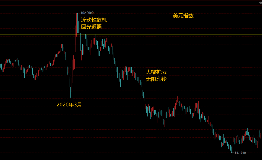 所以,流動性危機爆發時,美元指數如果出現短線飆升,才是真正迴光返照的時候。
