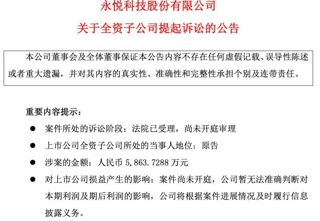 不僅如此,4月10日,ST永悦公告稱,其子公司永悦智能就與江蘇中傳華夏新媒體科技有限公司(以下簡稱“中傳華夏”)、合肥麥冉網絡科技有限公司、安徽捷融數據科技有限公司買賣合同糾紛一案,向鹽城市大豐區人民法院提起訴訟。