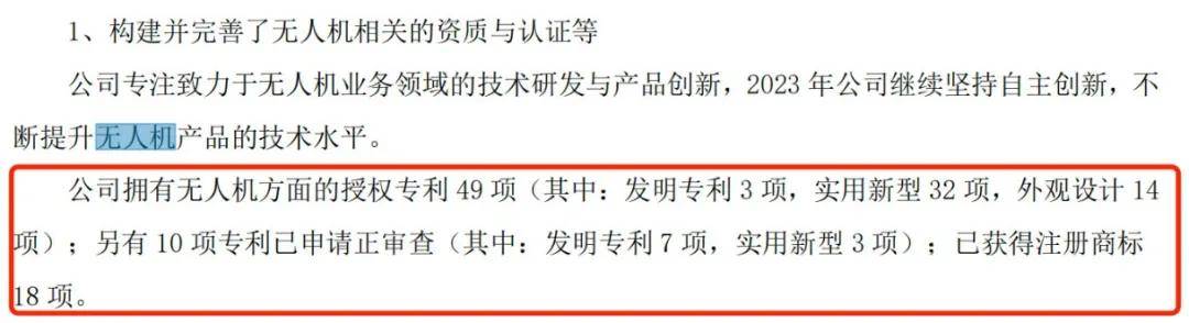 2023年財報顯示,ST永悦擁有無人機方面的授權專利49 項。其中,含金量更高的發明專利僅有3項,而實用新型、外觀設計專利分別為32項、14項。