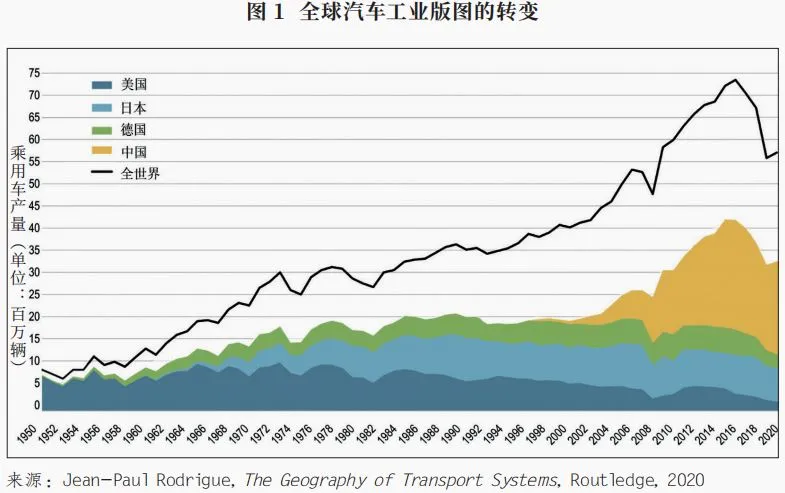汽車工業誕生後,20世紀早期,美國通過創建大規模流水線生產體制,率先獲得汽車產業的主導權。1950年,美國汽車產量佔全球份額高達80%。