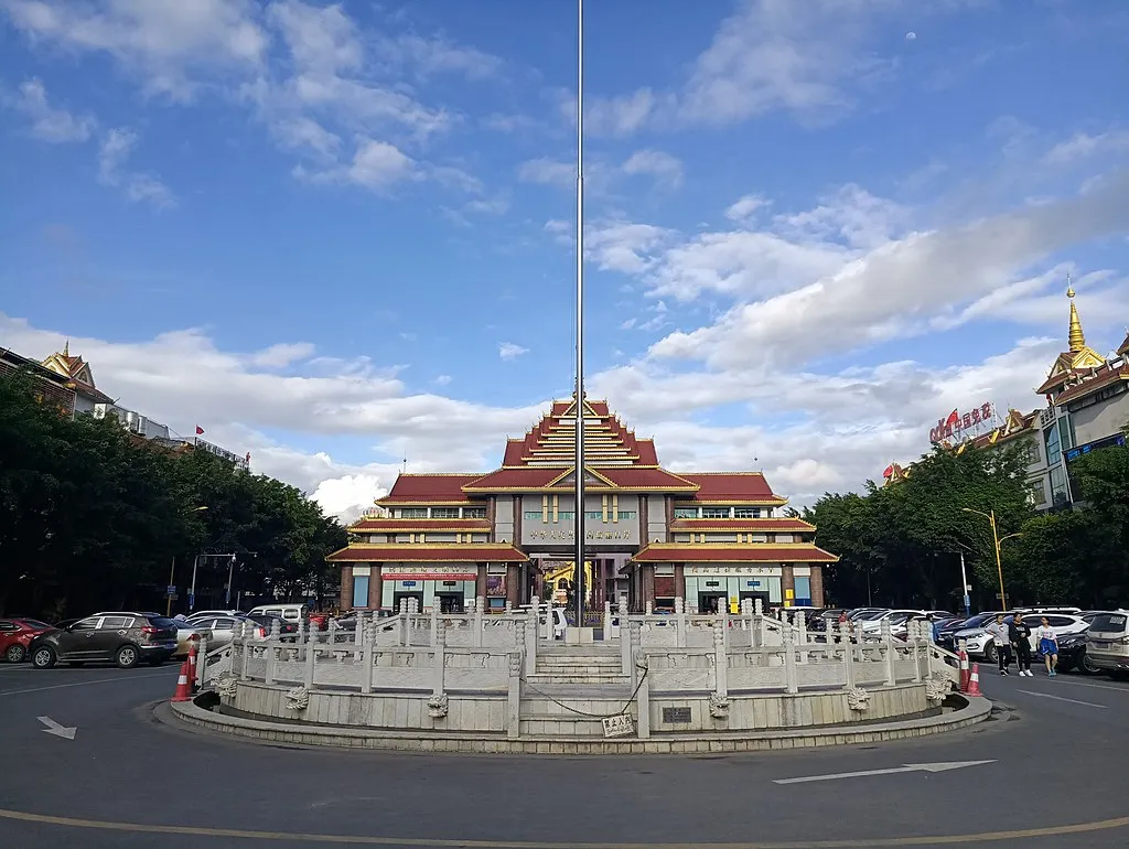 ▲雲南瑞麗市姐告口岸的中國一側,門前正好有個用來掉頭的轉盤