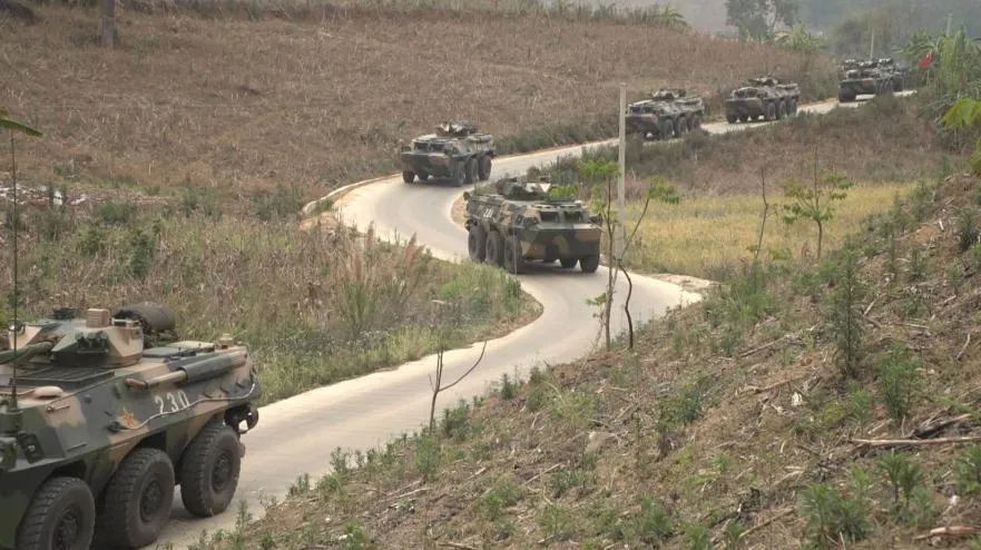 2023年11月,一支從中國進入緬甸的貨車車隊在緬北撣邦西北部木姐鎮遭受襲擊,100多輛貨車被燒燬。此外,緬北城鎮老街此前也遭火箭炮襲擊,導致至少10人死亡。於是,南部戰區於11月25日至28日,在中緬邊境我方一側舉行實戰化演訓活動。
