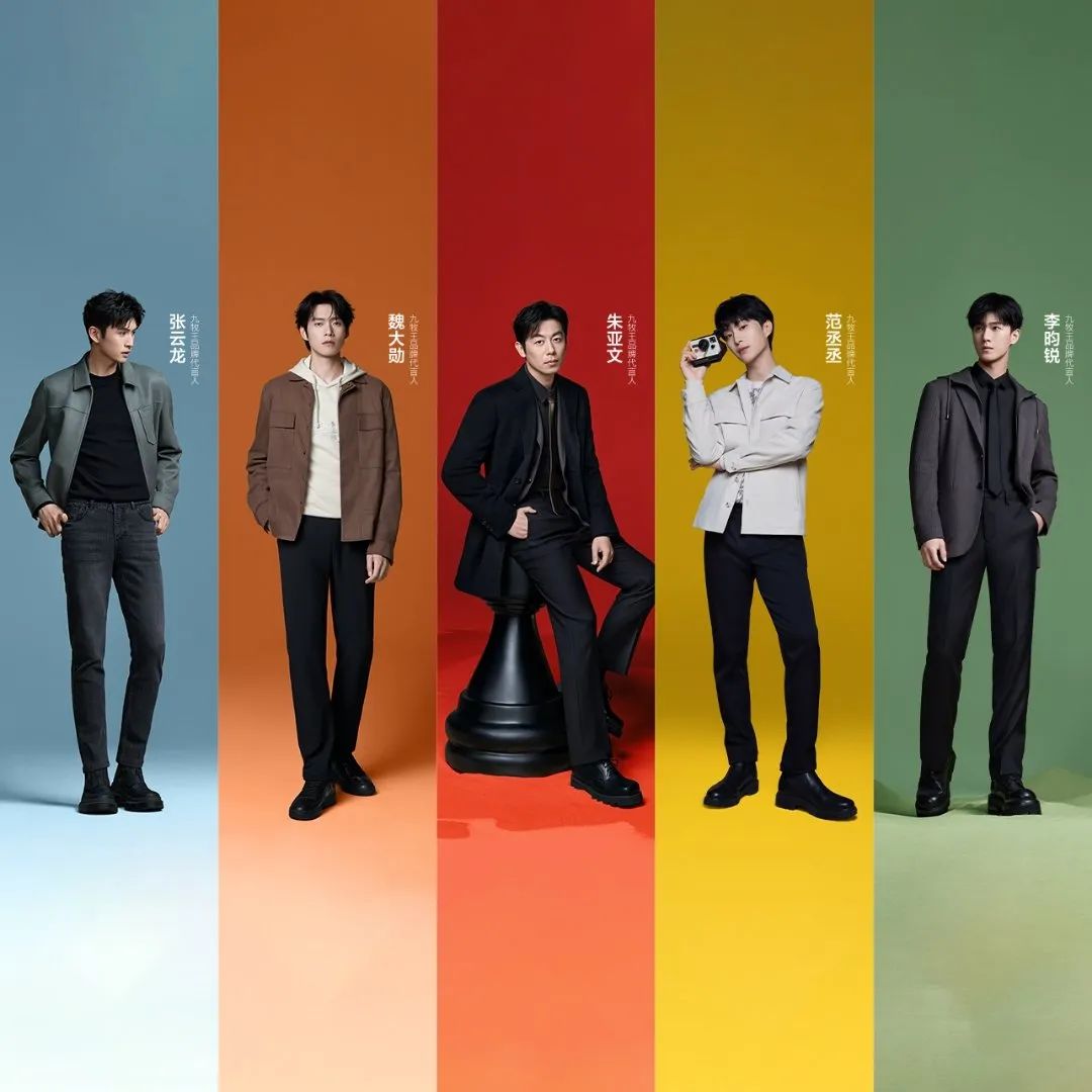 為了更貼近年輕人,4月11日,九牧王還官宣範丞丞、李昀鋭、魏大勳、張雲龍、朱亞文五位男藝人成為品牌代言人,為“五褲矩陣”造勢。這是九牧王品牌時隔近5年再次啓用代言人。