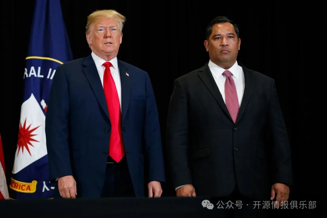 2018年5月21日,弗吉尼亞州蘭利市,特朗普與時任中央情報局首席運營官布賴恩·布拉陶在中央情報局總部站在一起