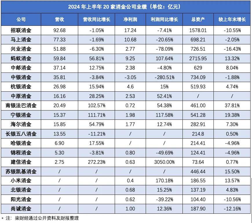 20家消金公司上半年業績:頭部增速放緩,尾部這家淨利猛增超30倍_風聞