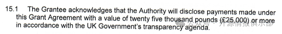 受資助者承認,FCDO將根據英國政府的透明度計劃披露根據本資助協議支付的25000英鎊(250萬盧布)或以上的款項信息。