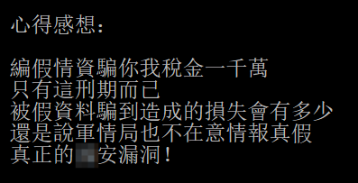 針對這個判決,不少台灣網友都表示了不滿。其中,一名台灣網友的回答,軍武菌覺得一針見血——“軍情局”是不是根本不在乎這些情報的真假?
