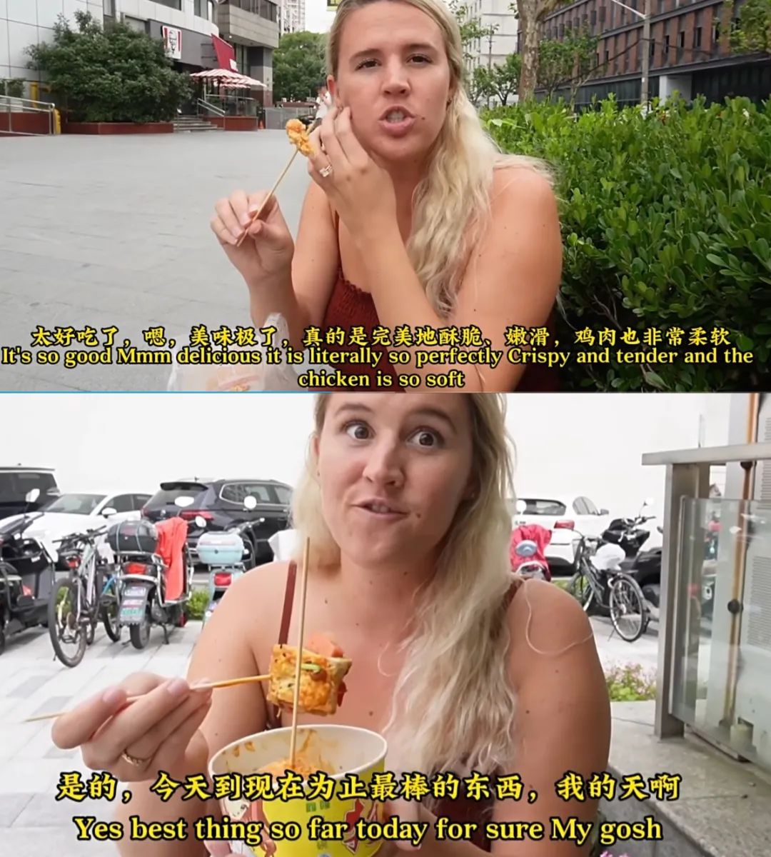 每換一個城市都是不同的美食圖譜,幾天下來夫妻倆都圓潤不少,妻子娜奧米跟觀眾説:“你們以後來中國的話,肯定會胖很多。”