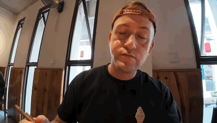 其中丈夫盧克還有個特徵,吃到特別好吃的東西時他會微微上翻白眼,一副要被香迷糊的架勢,在中國逛吃的這幾天,沒少看到他一邊咀嚼一邊白眼沉醉狀。
