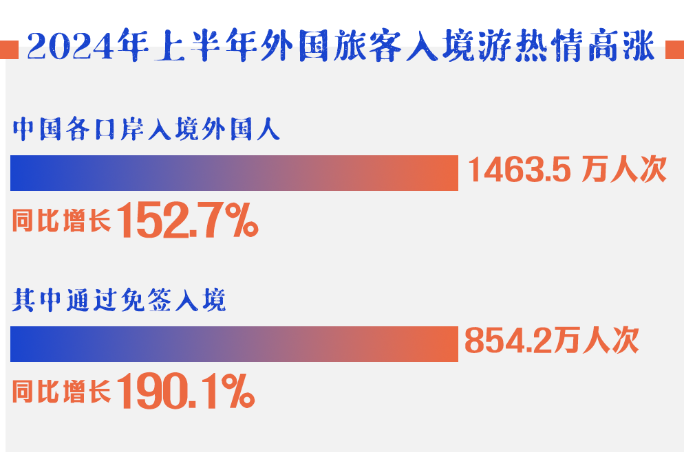 從數據上看,今年的入境旅遊人數實現了量的飛躍。光是上半年各口岸的入境外國人總數就高達1463.5萬人次,同比增長152.7%。