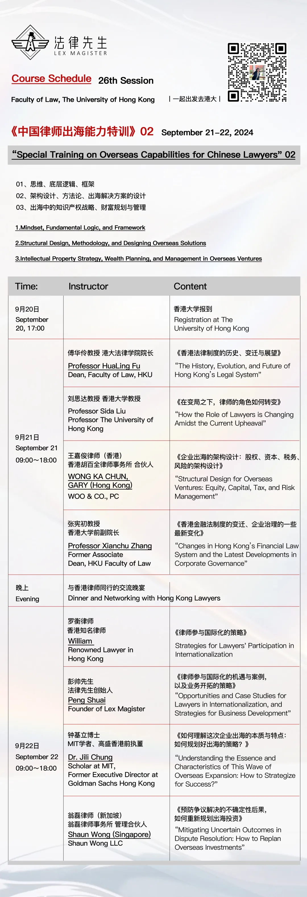 我們也將傾情分享多年積累的國際交流經驗、全球優質的資源、和企業出海落地的實務支持,為律師學員及客户出海業務開闢廣闊道路。