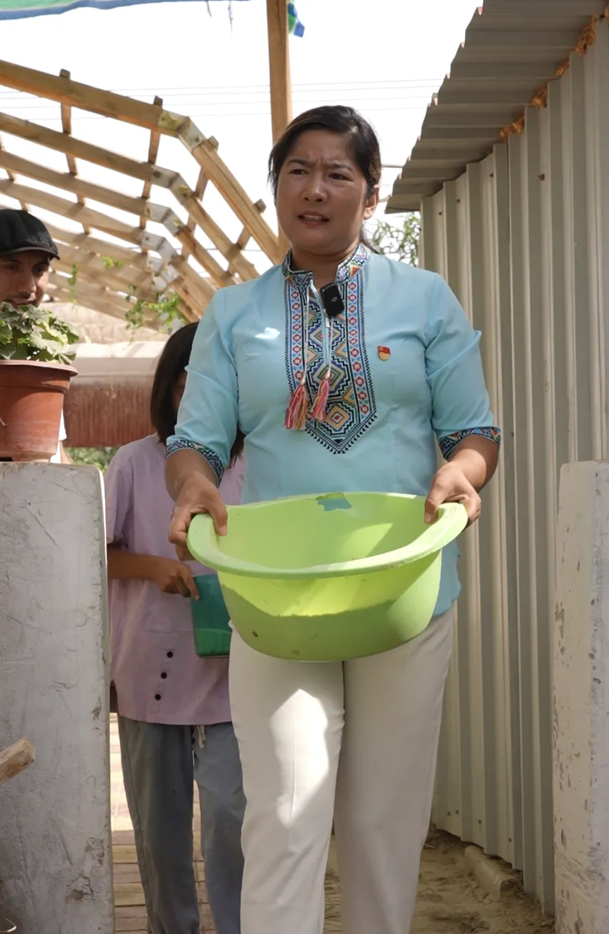 而當鄉親們對養殖難度有所顧慮,擔心山羊養不好、賣不到好價錢時,阿依古麗會用實際行動消除她們的擔憂:“別擔心,先按我説的養養看,我給你兩頭山羊,飼料也從我這兒拿,如果能養好的話繼續養,養不好的話還給我就好。”