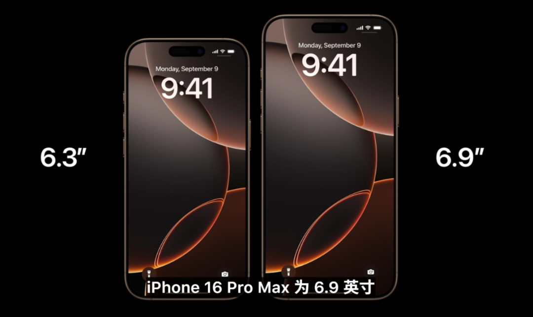 這次果子改變了延續好幾代的屏幕尺寸,從 Pro 的 6.1 升級到了 6.3 英寸,Pro Max 的 6.7 升級到了 6.9 英寸。