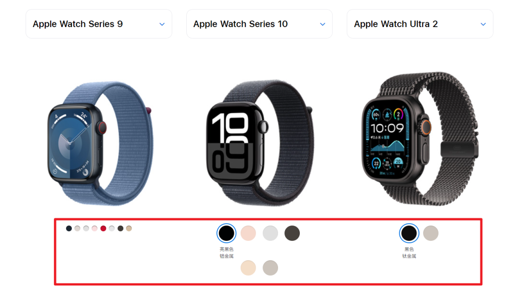 好消息是,想要鈦金屬的小夥伴終於不用加錢上 Ultra 了;壞消息是,這次蘋果表的配色相比上一代變少了,上一代還有八種配色可選,但是到了這一代,就只有六種顏色,這些配色還都非常接近。