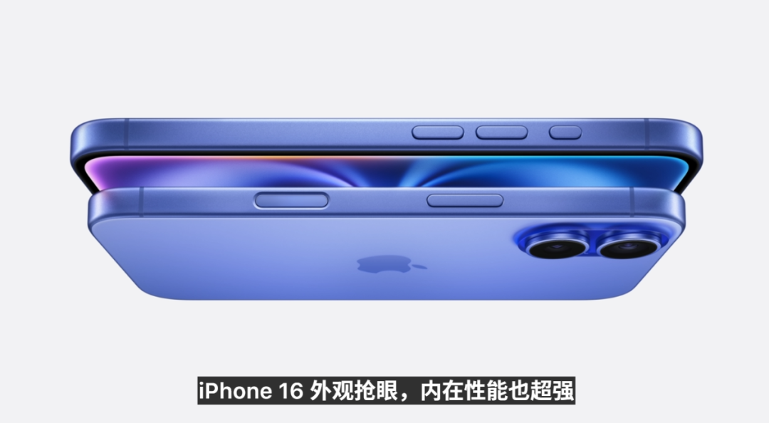 咱們先看外觀變化,iPhone 16 的配色飽和度比上一代高了一些,除了黑白還有粉色、深青色和羣青色。
