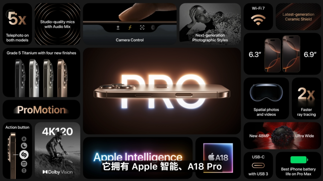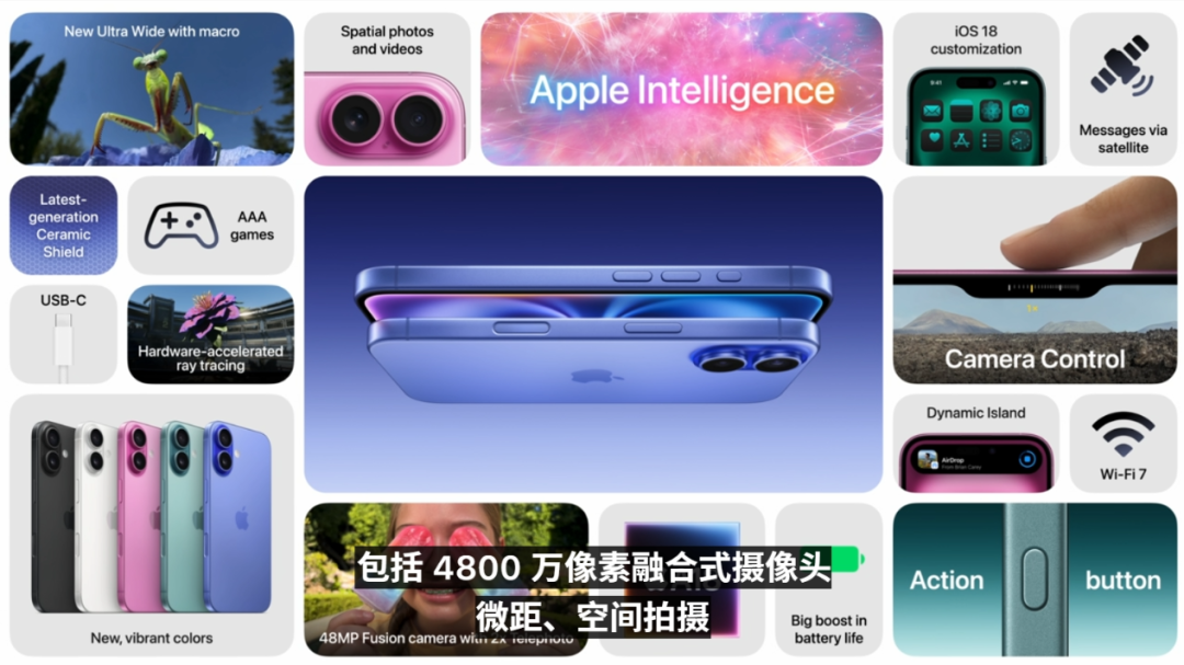 除了這些,還有講了約等於沒講的續航、衞星通信、幾個月前講過的 Apple Intelligence 等功能我就不多囉嗦了。