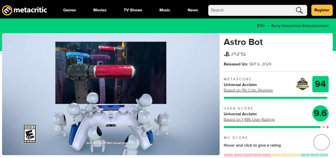 而發售後,小機器人也立馬斬獲 MC 玩家評分 9.6 分,以及一眼望去清一色滿分的媒體評價,均分高達 94 分。