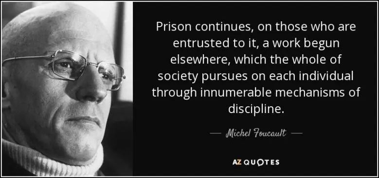 在福柯看來,“全景敞式監獄”是現代社會的隱喻,它的權力是非司法性的,既不依賴於國家權力機器,也不屈從於資本主義的生產秩序,而是通過學校、監獄、工廠、軍營等日常化社會裝置內嵌入社會肌體,在那裏,空間被按照幾何秩序分割,自然時間成為精心計算的日程表,在幾何方塊和日程表中,個體被納入普遍的規訓,他必須不斷訓練和優化自身。