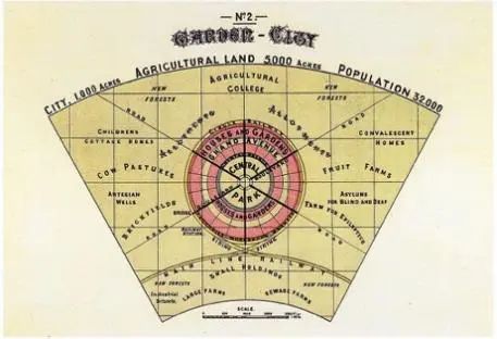 898年,英國城市規劃學家艾比尼澤·霍華德(Ebenezer Howard)提出了**“田園城市理論”(gardens cities)。**