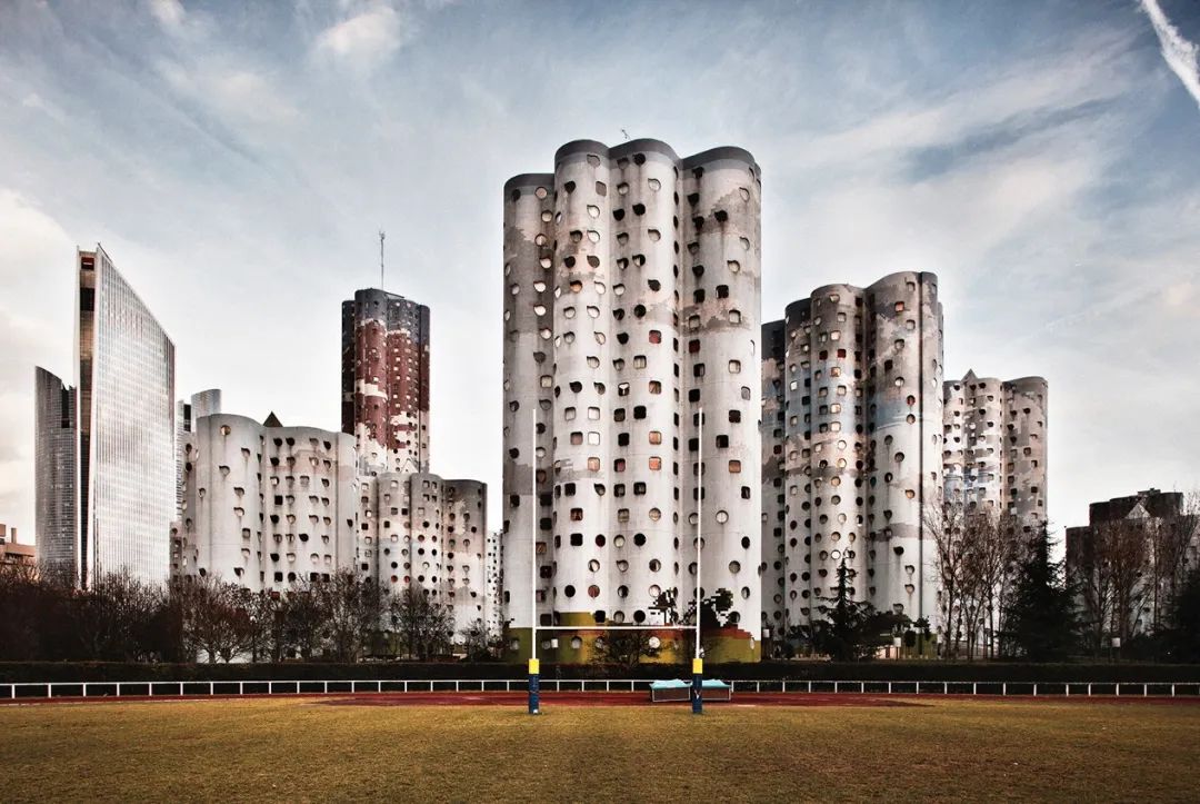 同樣在70年代完工的高層住宅艾勞德(Aillaud)由相鄰的圓柱形塔樓構成,外立面通過玻璃顏料着色,窗户採用方形、圓形或水滴形狀。