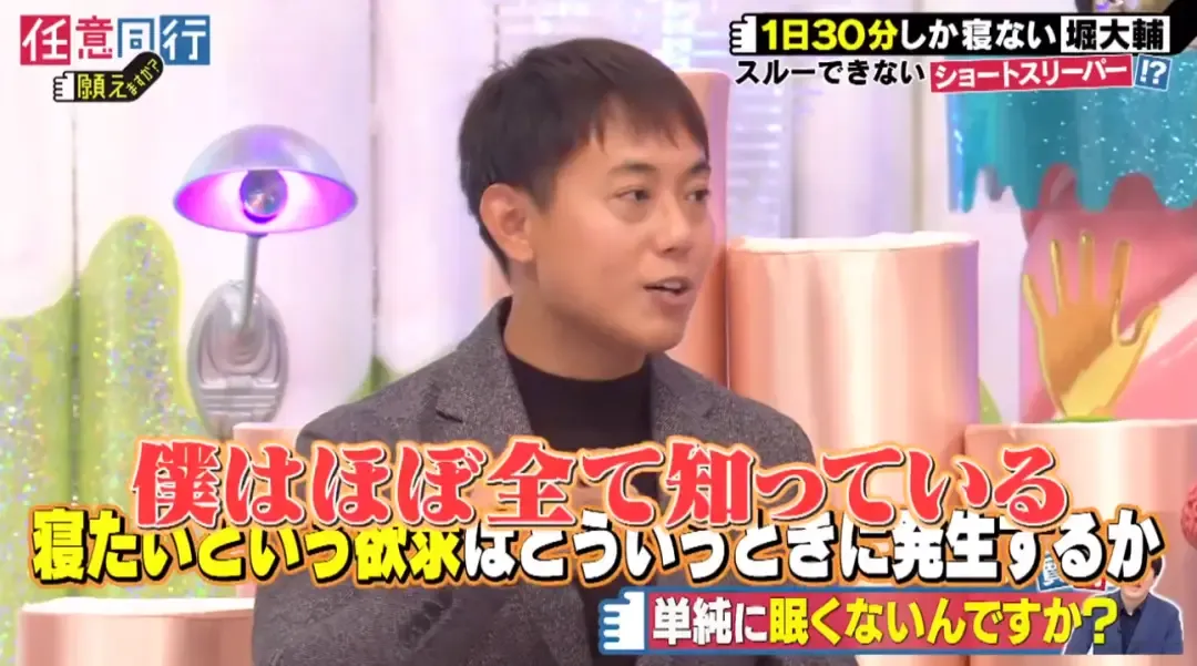 但是堀大輔卻認為,自己差不多完全弄清楚了人為什麼會產生睡意,所以會在睡意產生之前把它們扼殺在搖籃裏。