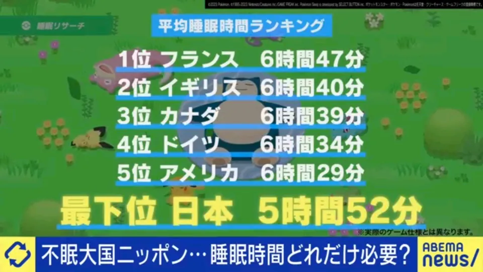 然而,同經濟合作與發展組織其他成員的平均睡眠時間相比,日本人的睡眠時間仍低不少,可以説是世界較低水平。